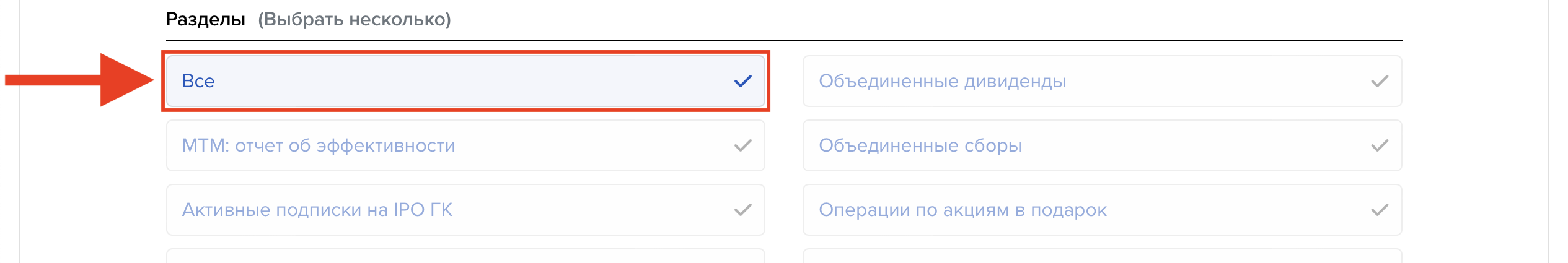 В блоке «Разделы» («Sections») нажмите на вариант «Все» («All»)