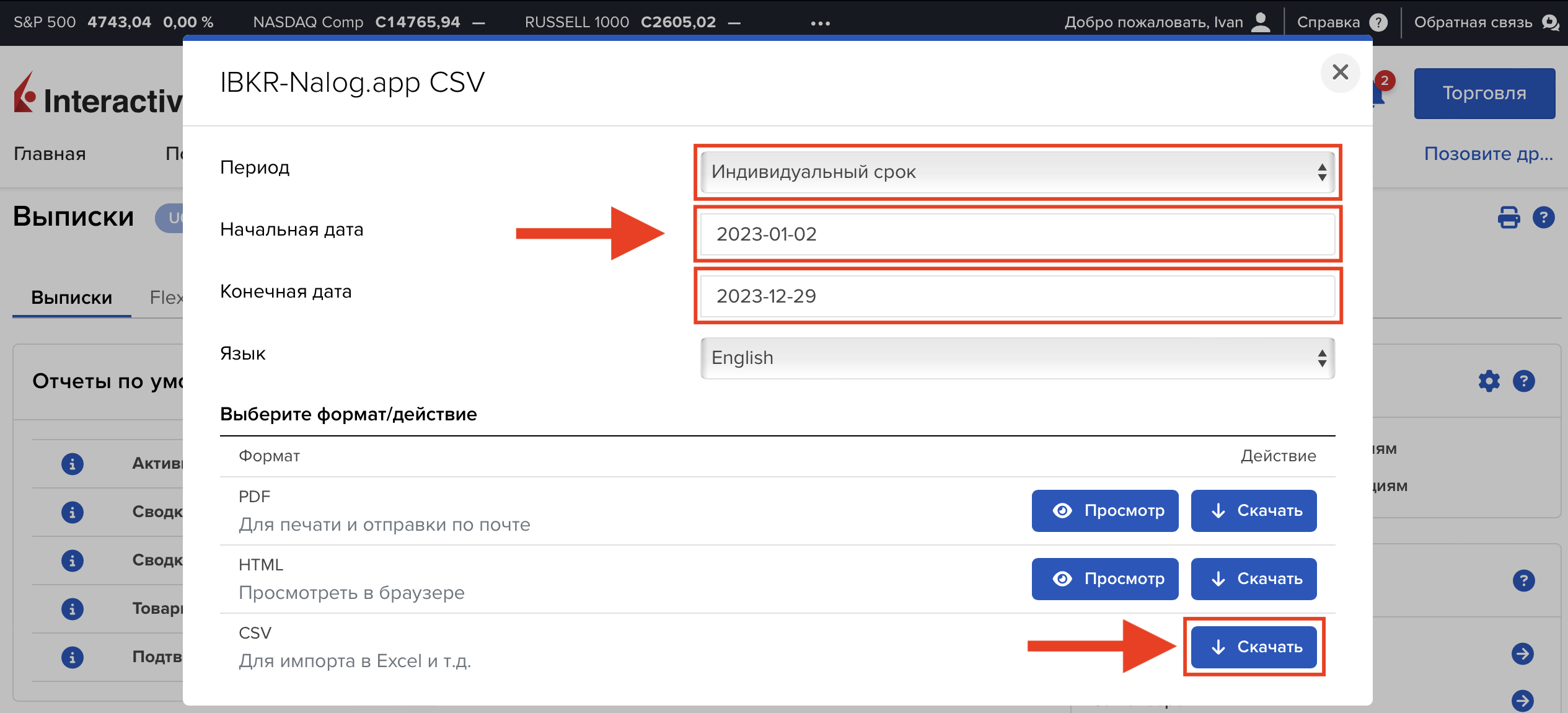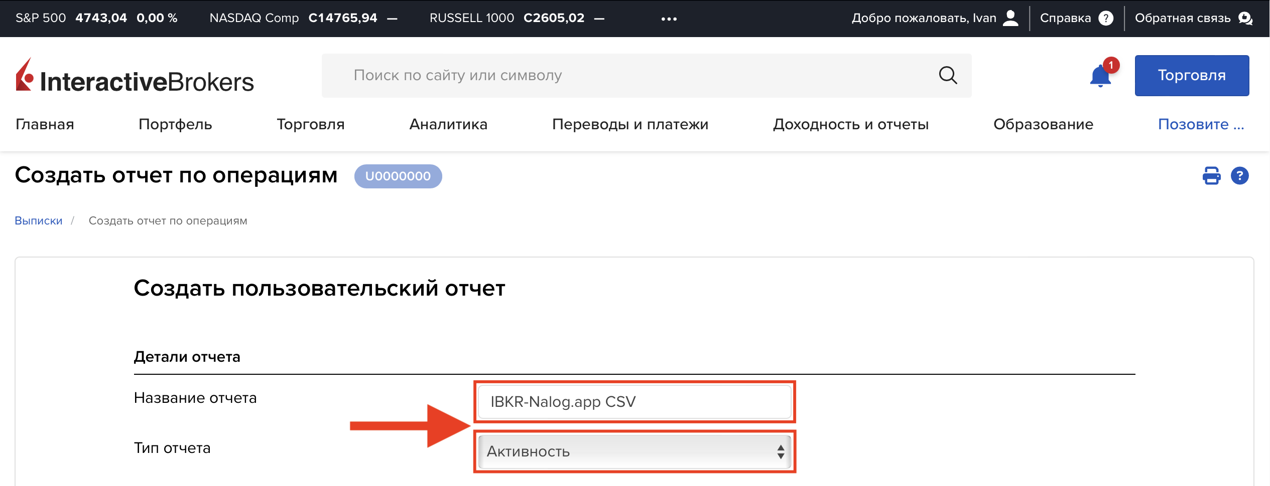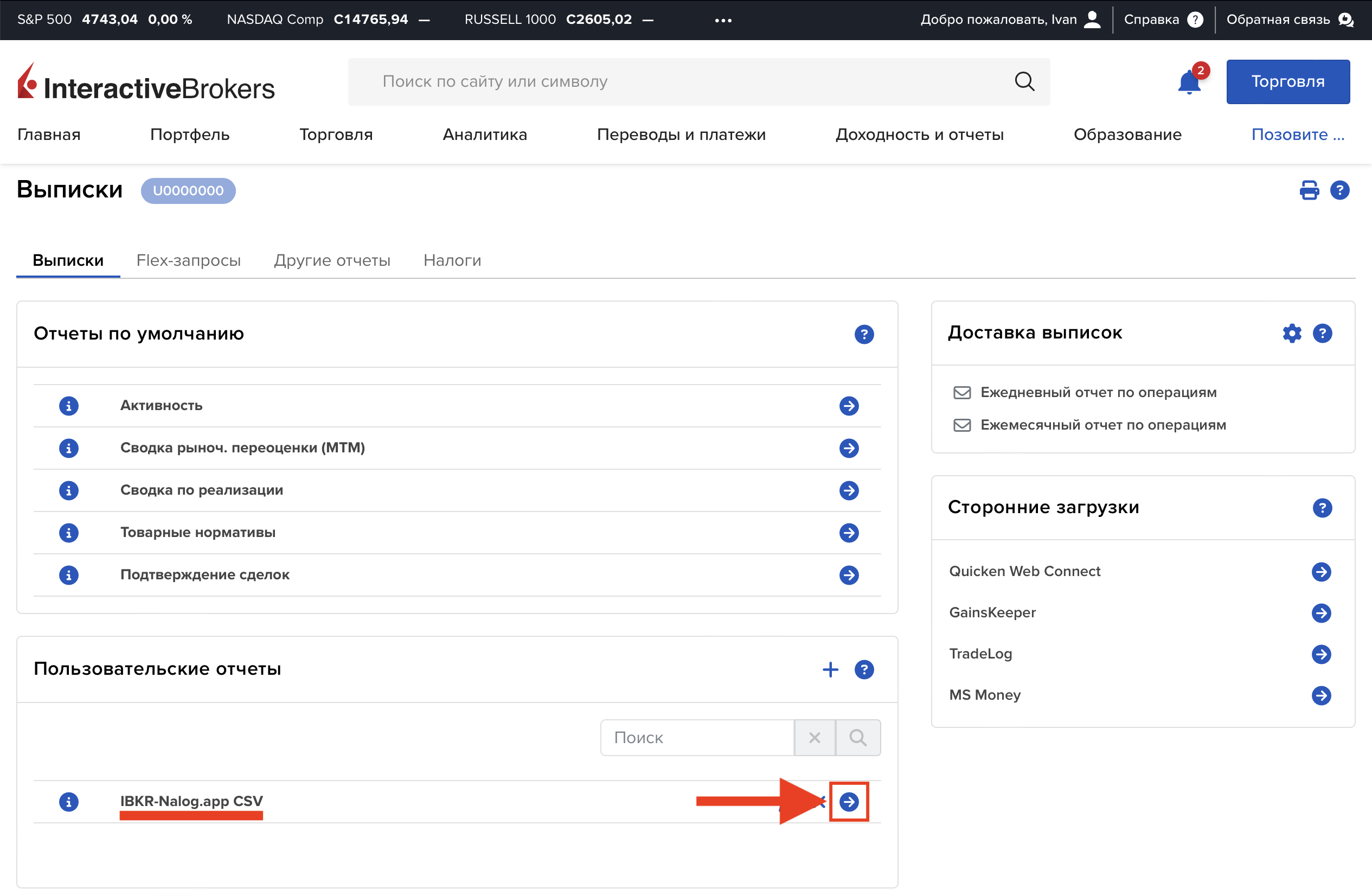Как скачать отчёт брокера Interactive Brokers для загрузки на странице создания декларации