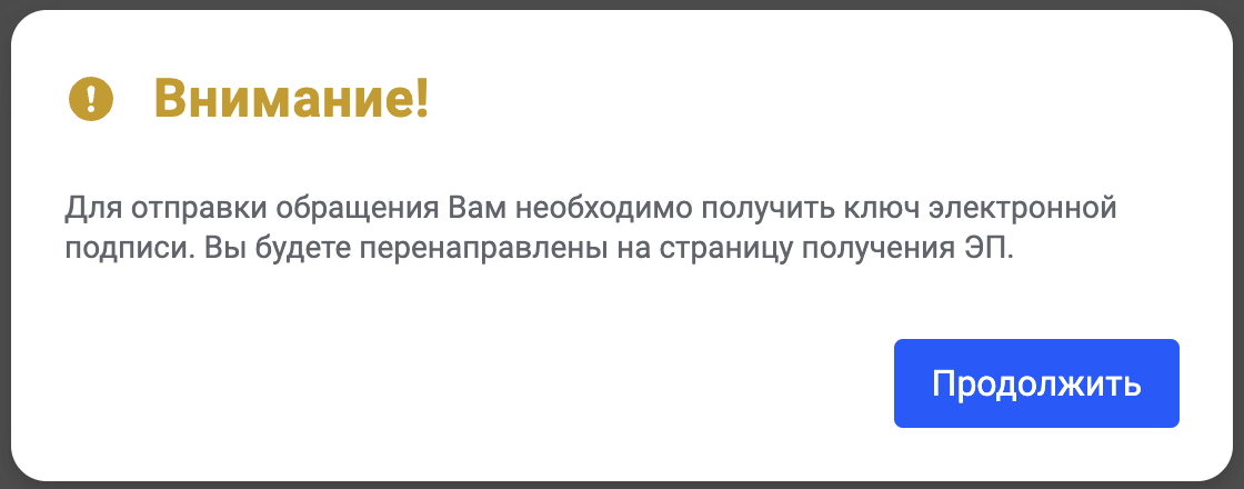 Нажмите на кнопку «Продолжить» и следуйте инструкциям, чтобы создать электронную подпись для ФНС. После создания электронной подписи повторите действие из шага 2.